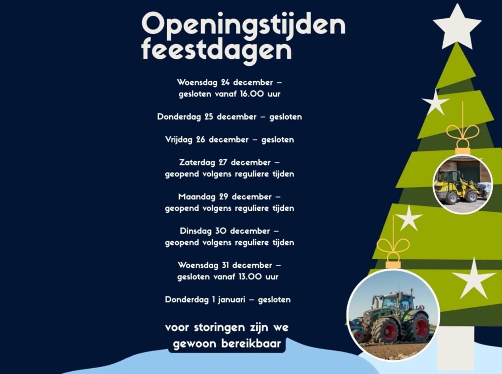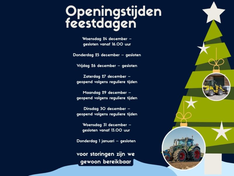 Tijdens de komende feestdagen hanteren wij gewijzigde openingstijden.