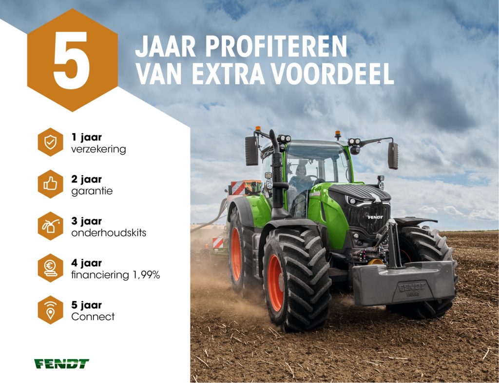 Het najaar komt eraan en we hebben dit jaar een zeer mooie actie: 5 jaar profiteren van extra voordeel! Een nieuwe Fendt biedt al veel voordelen, maar met deze actie profiteert u maar liefst 5 jaar lang van éxtra voordeel.