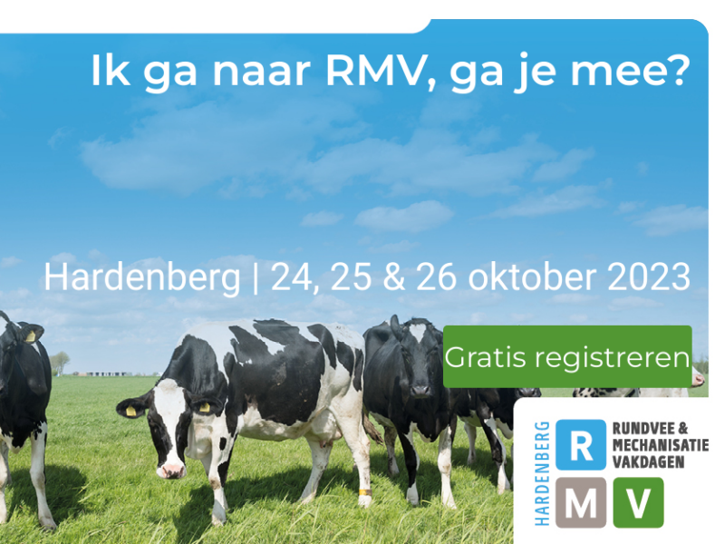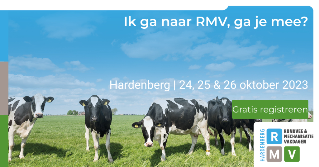 Op 24, 25 & 26 oktober 2023 vindt de volgende editie van RMV Hardenberg plaats. Deze beurs is dé beurs waar de koe, toekomst en innovaties centraal staan. Bij RMV vind je een breed aanbod producten, diensten en innovaties die je helpen jouw bedrijf toekomstbestendig te maken. Ook vindt er dagelijks voor aanvang van de beurs een openingssymposium plaats over één van de drie hoofdthema’s van RMV: de toekomst van de melkveehouderij, Smart Animal Farming en diergezondheid.