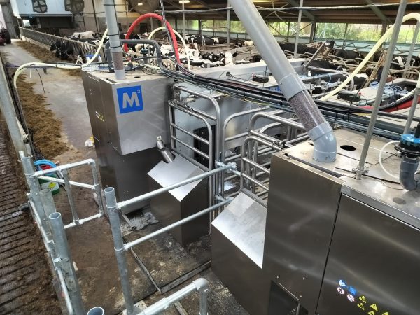 De robots zijn in kop-kop opstelling geplaatst, waardoor er gesepareerd kan worden naar een separatieruimte en naar de weide.