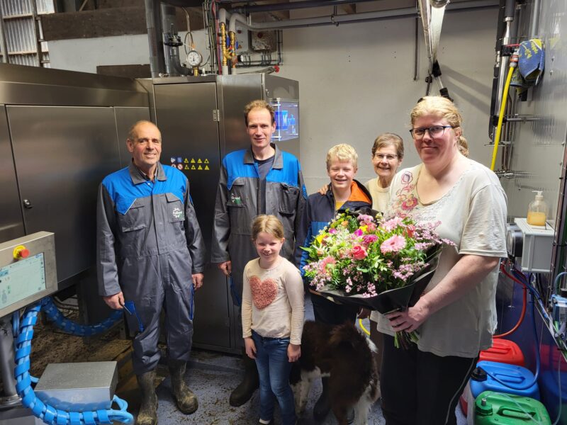 Het betreft een mooie complete installatie met oa. melkvoorkoeler (buizenkoeler), Paccool buffertank, extra voerbox, etc. Hierdoor kan er een grotere capaciteit behaald worden en wordt stilstand beperkt. De herkenning betreft Tiris herkenning en de robot is voorzien van zowel Twin-entry, als Twin-exit waardoor er veel separatiemogelijkheden mogelijk zijn op een klein vloeroppervlak. Tevens is dit bedrijf uitgerust met onze nieuwe Fullsense software en natuurlijk onze sublieme Streampulse melktechniek.